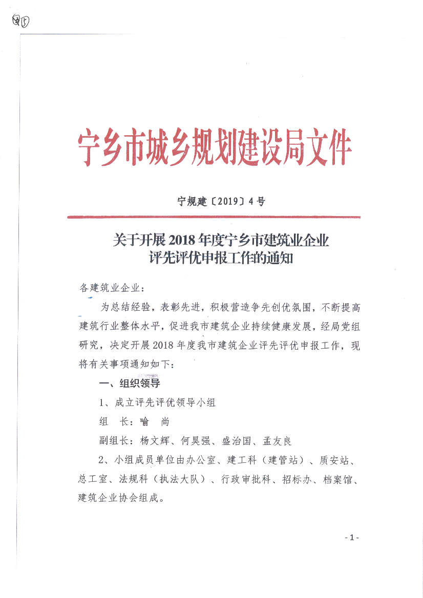 關(guān)于表彰2019年度寧鄉(xiāng)市建筑業(yè)先進(jìn)企業(yè)的決定