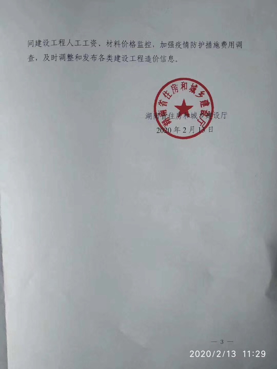 湖南省住房和城鄉建設廳關于新冠肺炎疫情防控期間工程計價有關事項的通知